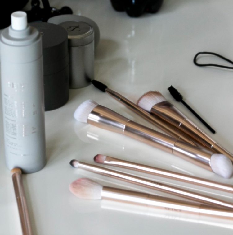 Double-ended brushes save space in your bag and make your beauty routine a breeze. They are also shaped to precisely fit the contours of your face